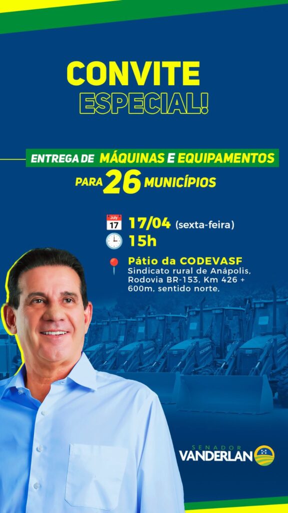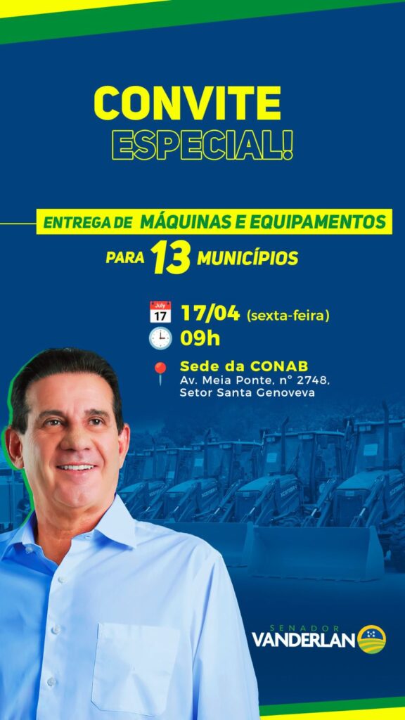 O senador Vanderlan Cardoso realiza, nesta sexta-feira (17), a entrega de máquinas destinadas a 39 municípios goianos, em mais uma ação voltada ao fortalecimento da infraestrutura e apoio às administrações locais.