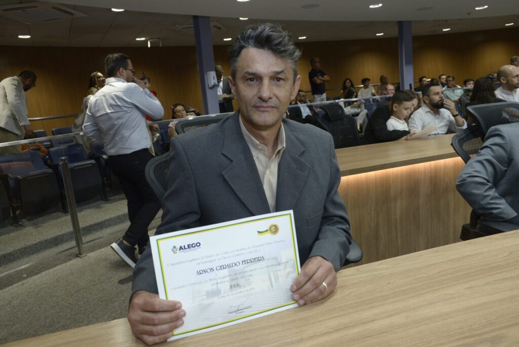 Arnon, que presta serviços em Goiânia e também em Iporá, foi indicado para receber o Certificado do Mérito Legislativo. Foi o próprio presidente da Assembleia Legislativa, Bruno Peixoto, quem cumprimentou o contador iporaense no instante de homenagem e entregou a ele o Certificado. Além de Arnon, outros contadores de Goiás também foram homenageados.