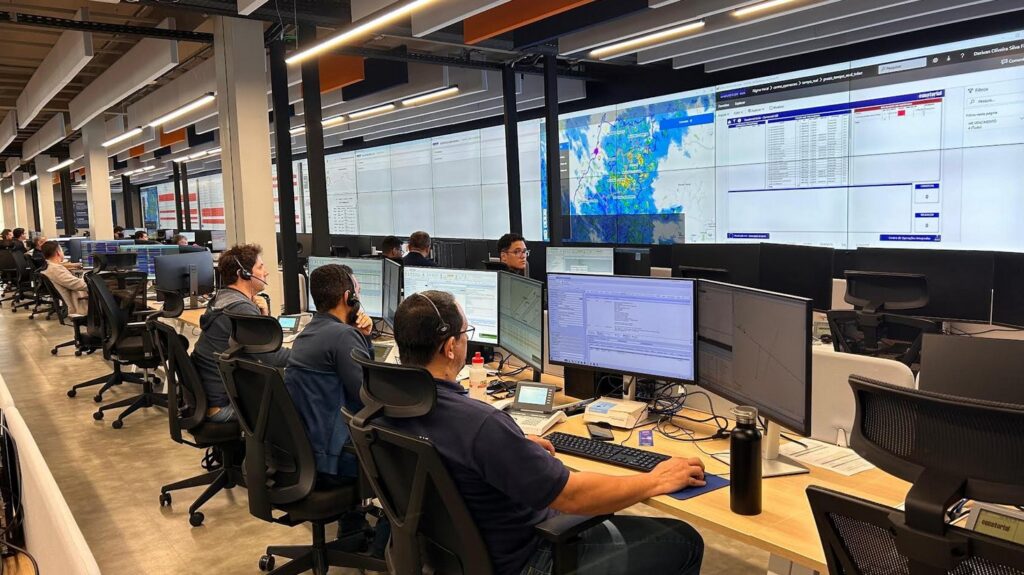 A operação é coordenada pelo Centro de Operações Integradas, responsável pelo monitoramento em tempo real do sistema elétrico, despacho de ocorrências e priorização de atendimentos emergenciais. A sala de monitoramento acompanha indicadores operacionais, eventos climáticos, ocorrências de maior impacto e o atendimento a clientes prioritários.