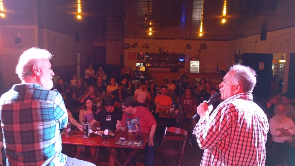 A noite deste domingo, 12 de outubro, foi marcada por muita alegria e boas risadas no Bar Caverna, em Iporá. O espaço cultural, já conhecido por suas atrações musicais e eventos artísticos, recebeu o show de humor “Várias Faces do Humor”, apresentado pelos atores e humoristas Mauri de Castro e Eurípedes Oliveira.